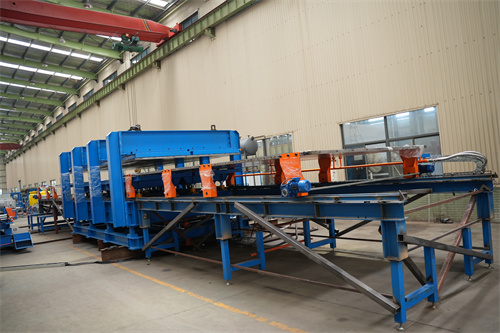 非連續(xù)式聚氨酯夾芯板/冷藏車(chē)廂板生產(chǎn)設(shè)備的尺寸達(dá)到3.5米x14米,采用雙邊進(jìn)出形式,主機(jī)可傾斜;是目前國(guó)內(nèi)最先進(jìn)的廂式貨車(chē)復(fù)合廂板熱粘合壓板大型專(zhuān)用設(shè)備,可生產(chǎn)冷庫(kù)板和大型車(chē)廂板。設(shè)備由主機(jī)機(jī)架、左右移動(dòng)輸送平臺(tái)、載模板、液壓驅(qū)動(dòng)頂升平臺(tái)、熱壓板加溫系統(tǒng)、PLC控制系統(tǒng)等構(gòu)成。