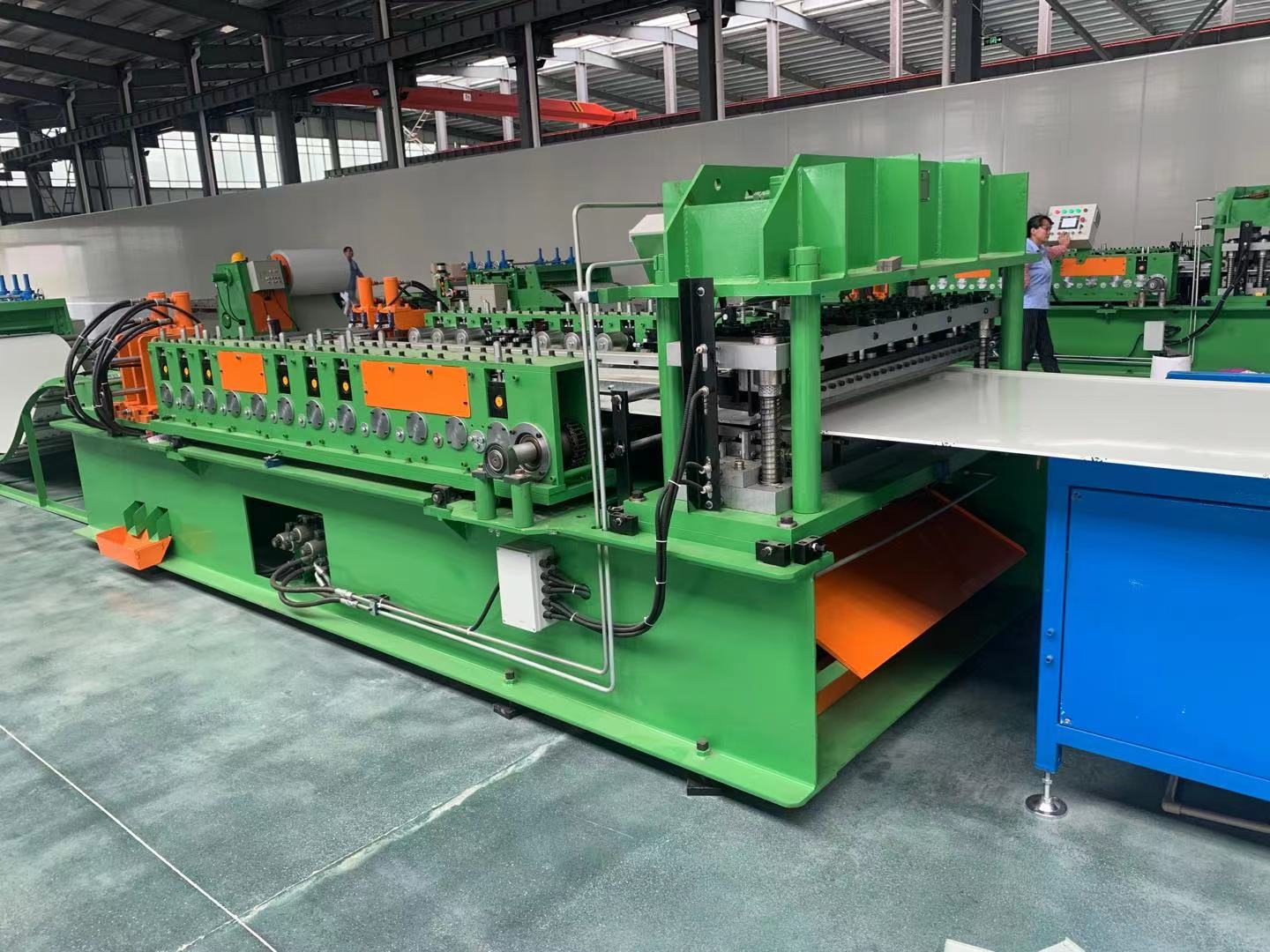 此機(jī)組由3T手動(dòng)供料裝置, 整平裝置,傳動(dòng)裝置,成型輥道及主機(jī)(包含導(dǎo)向平臺(tái)),成型后切斷裝置,液壓系統(tǒng),電控系統(tǒng),成品托料裝置等組成。 裝料開卷(把鋼卷裝入內(nèi)撐式開料架撐緊) 二輥夾送進(jìn)板校準(zhǔn)正確導(dǎo)入整平、輥壓成形、成型后切斷、成品托料出板。