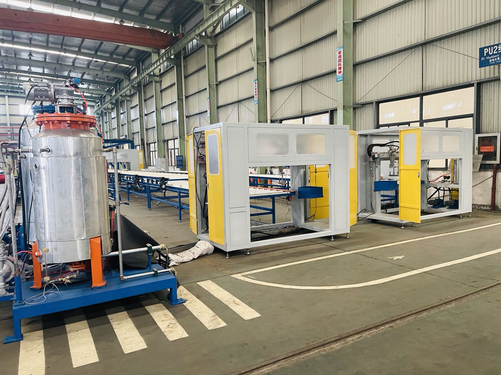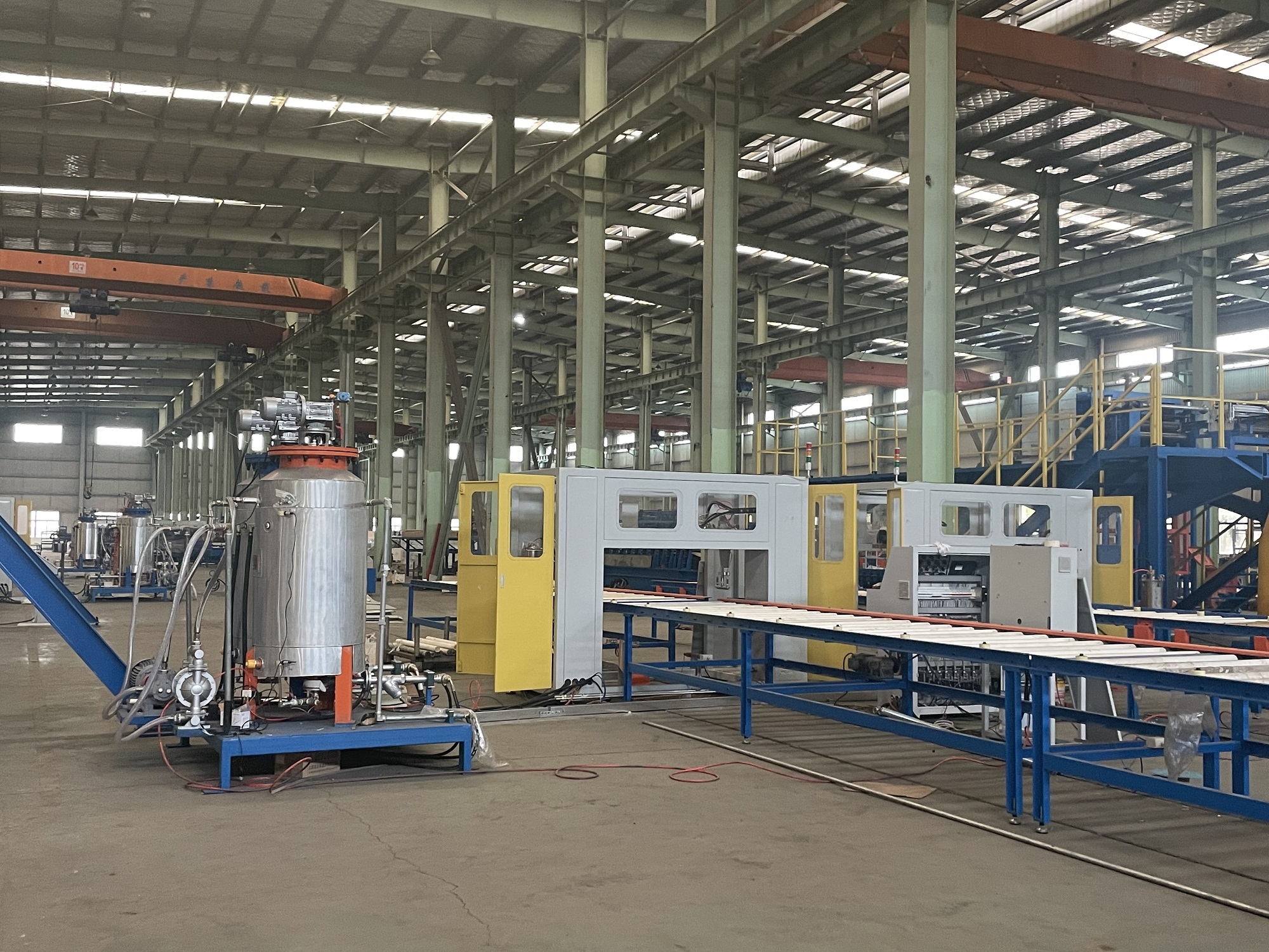 橫移翻板系統(tǒng)裝置是把單張淋膠結(jié)束的上鋼板自動完成橫向移動、自動翻轉(zhuǎn)、自動復合巖棉的裝置,是整條線的重要設備之一,也是生產(chǎn)高品質(zhì)復合板的不可缺少的環(huán)節(jié)。